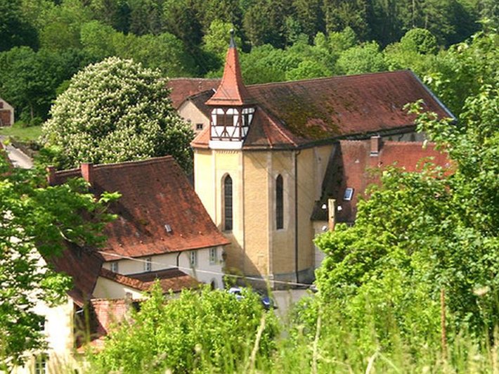 Accanto a Creglingen nella valle del fiume Steinach una volta era situato un solitario convento cluniacense fondato dai Signori Konrad e Gottfried di Hohenlohe-Brauneck nell’anno 1232. L’edificio fu costruito in forma di chiesa di sotto et di sopra portando (così) ad un effetto acustico straordinario per cui la fama della chiesa.